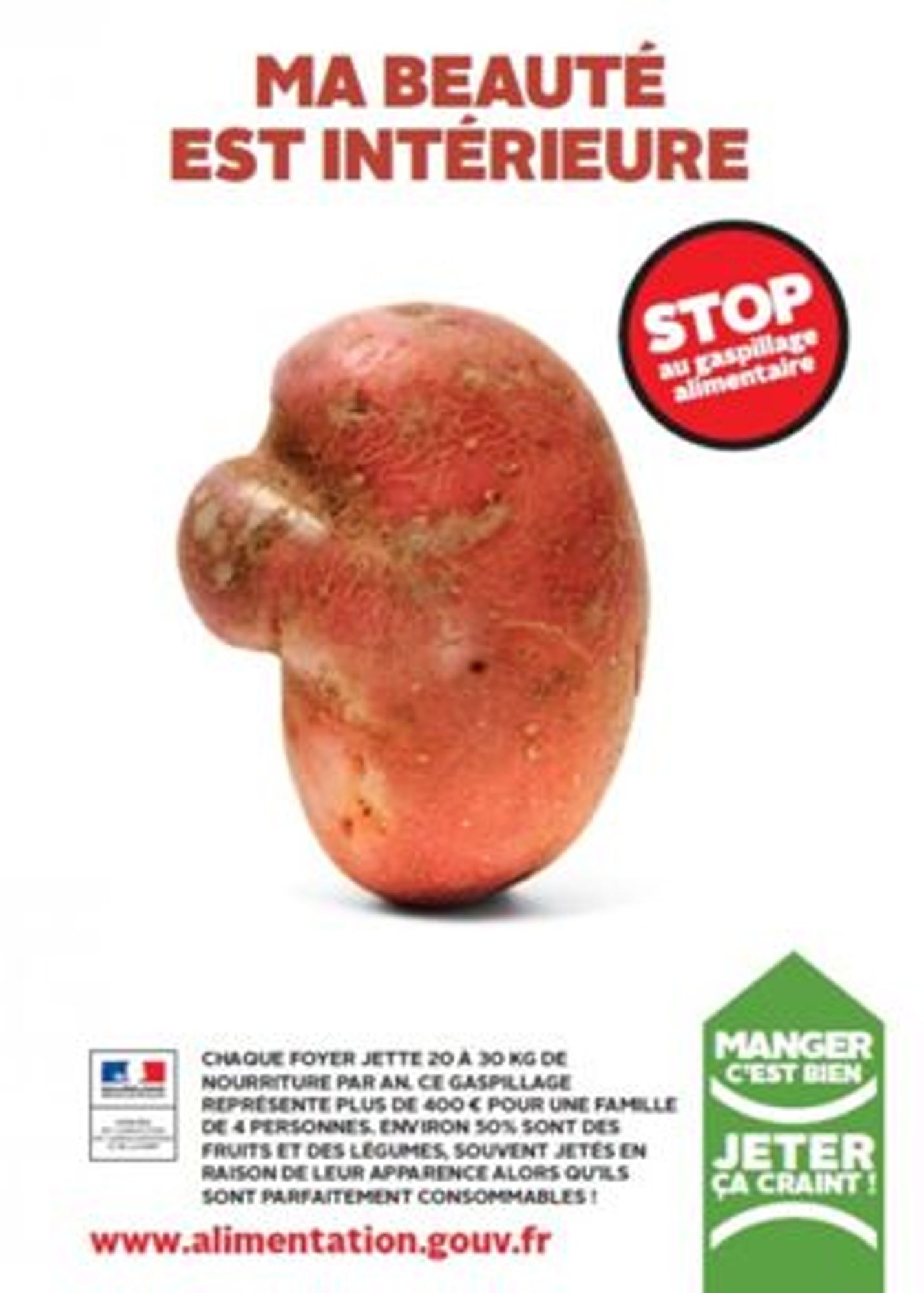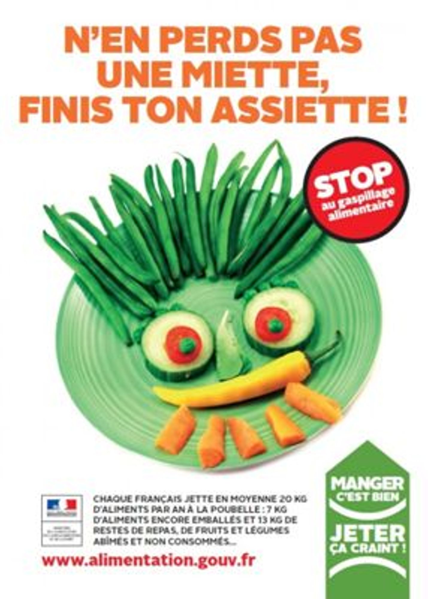 Tirée d'une des campagnes de sensibilisation au gaspillage alimentaire (2014), cette affiche incite avec une touche humoristique à agir favorablement contre le gaspillage alimentaire.