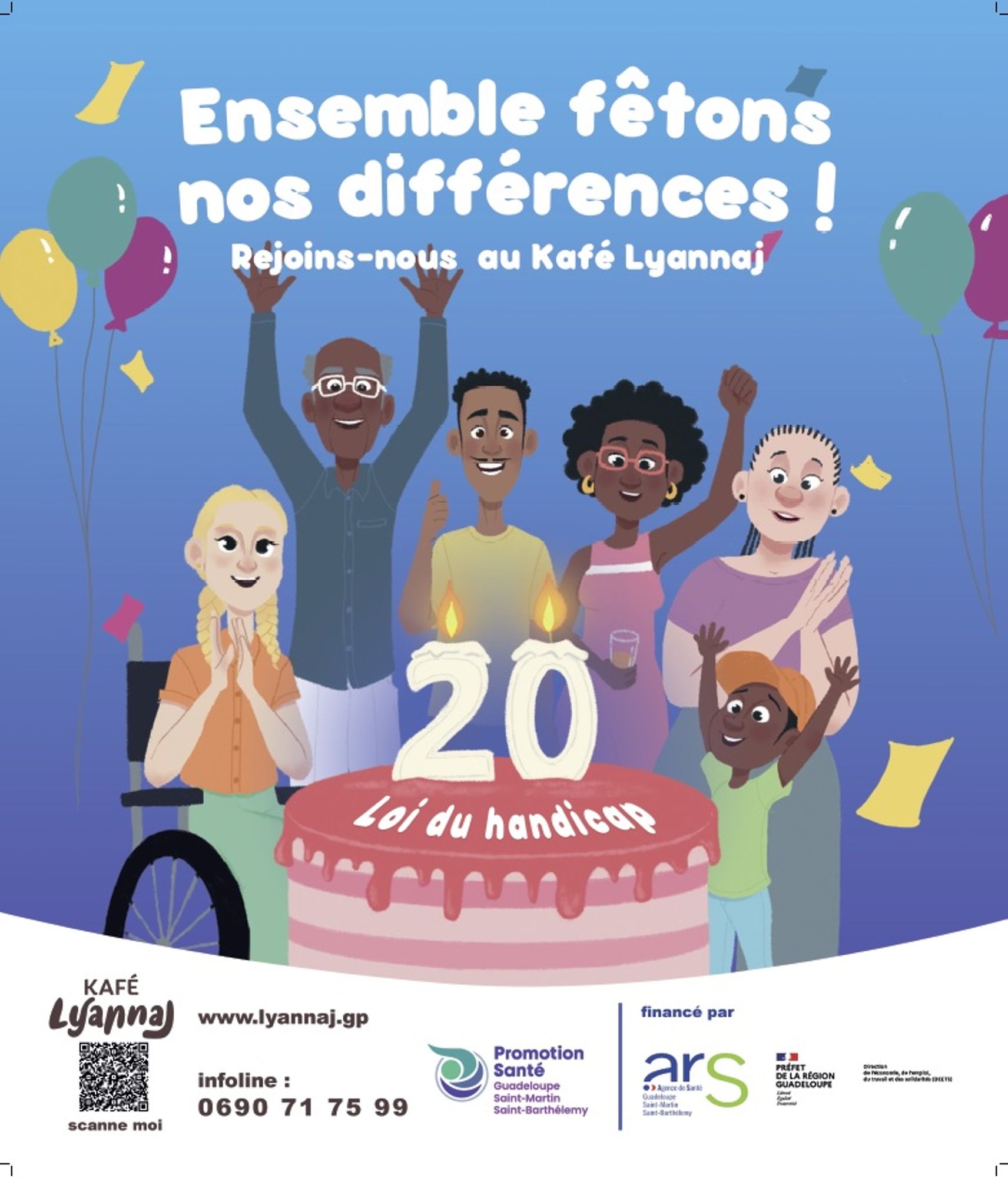 A cette occasion, Promotion Santé Guadeloupe, Saint-Martin, Saint-Barthélemy et ses partenaires du « Groupe Cotech Malle Handi Santé » vous invitent à participer à un ou plusieurs Kafé Lyannaj.
