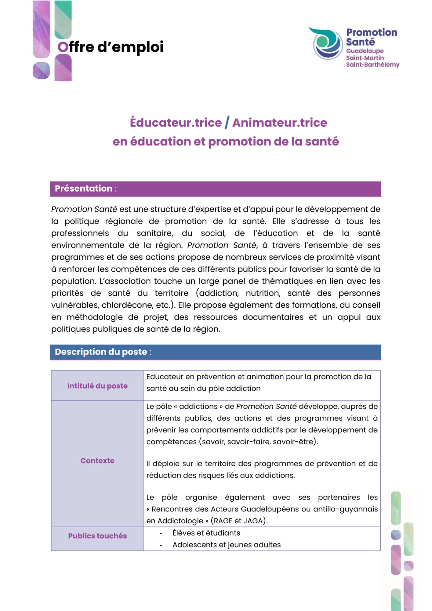 Promotion Santé recrute son Educateur en prévention et animation pour la promotion de la santé au sein du pôle addiction !