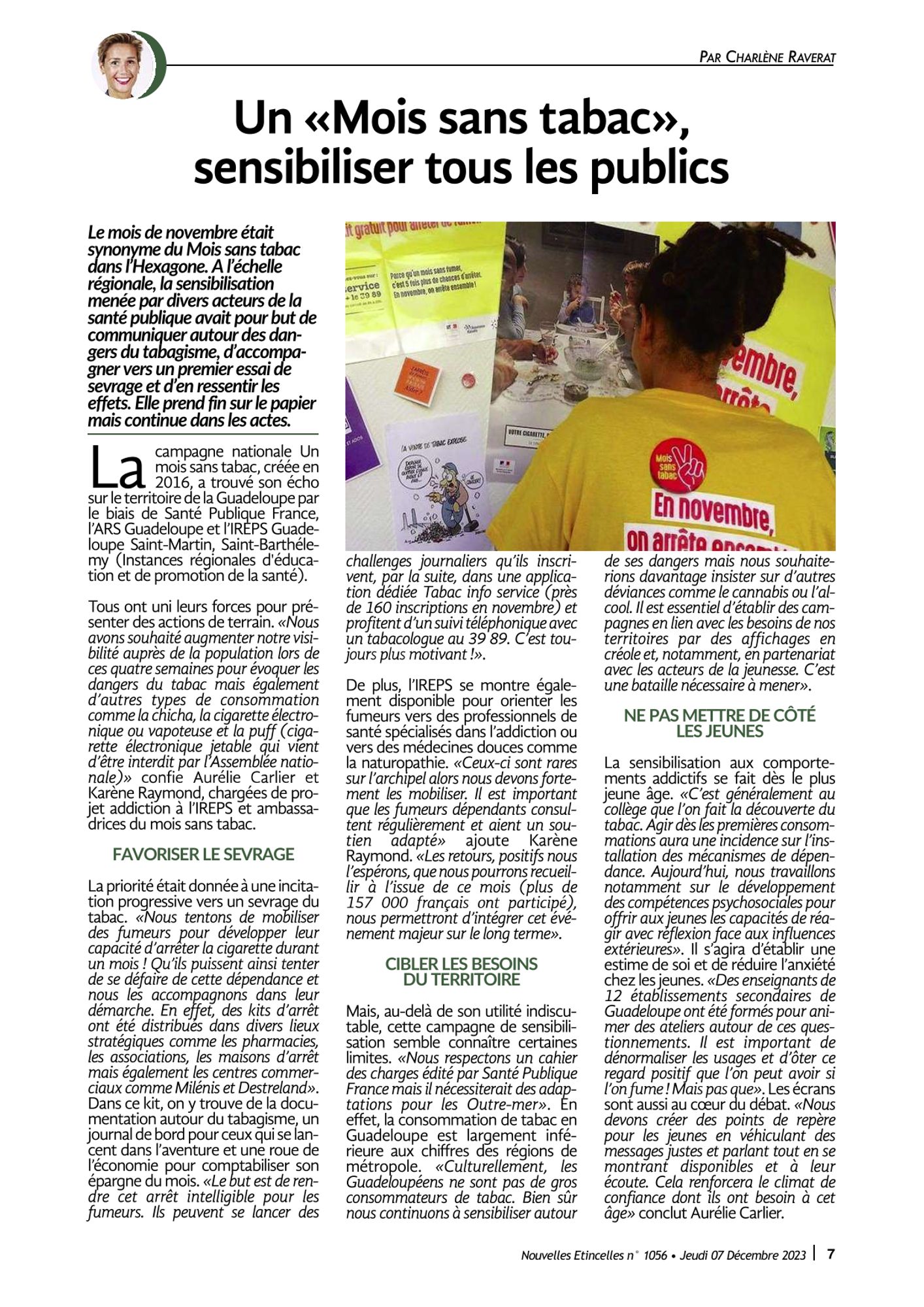 Un mois sans tabac, sensibiliser tous les publics. Nouvelles Etincelles n°1056 - jeudi 07 décembre 2023, p. 07