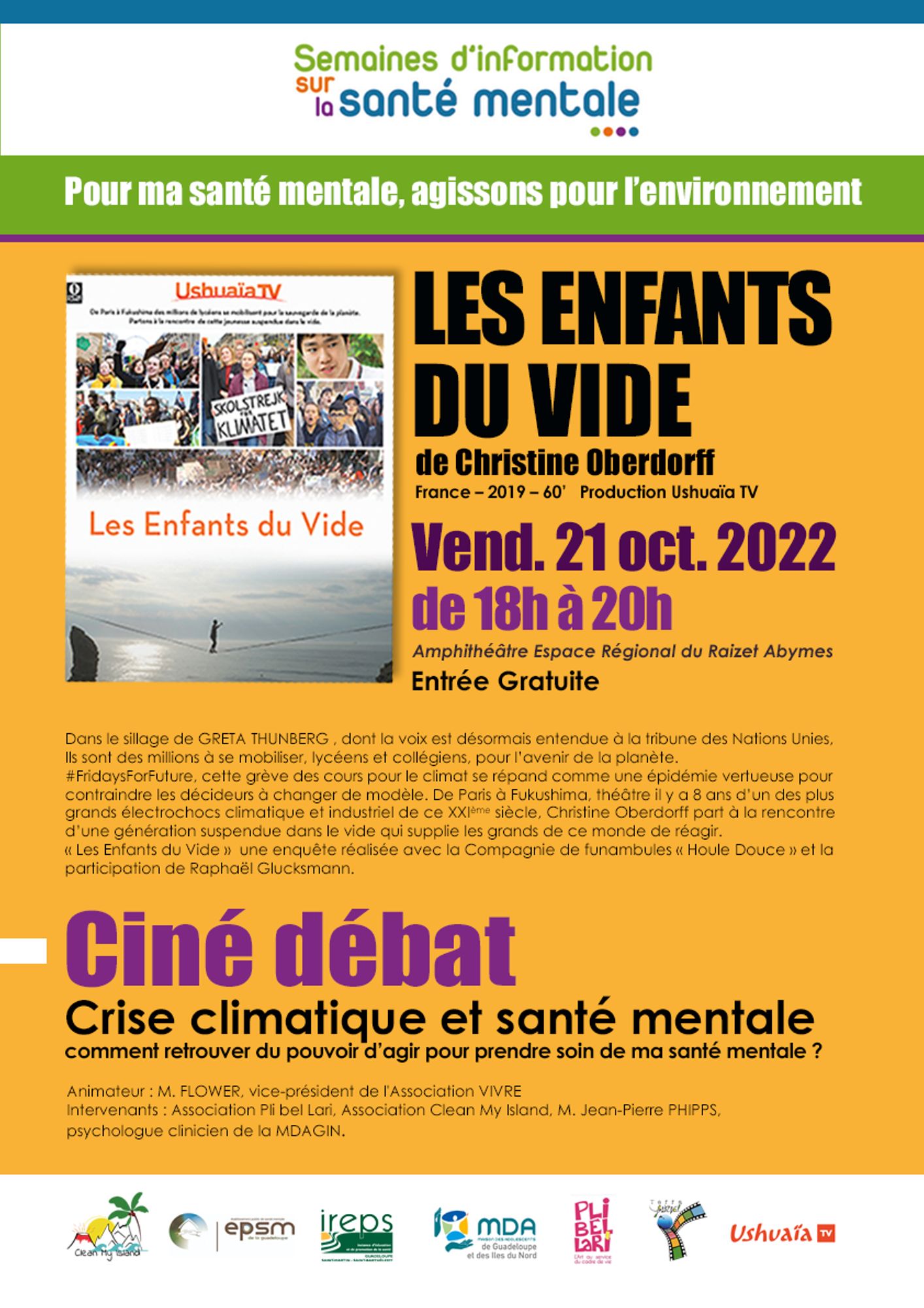 Semaines d'Information sur la Santé Mentale en Guadeloupe - Invitation Ciné-débat "Crise climatique et santé mentale "