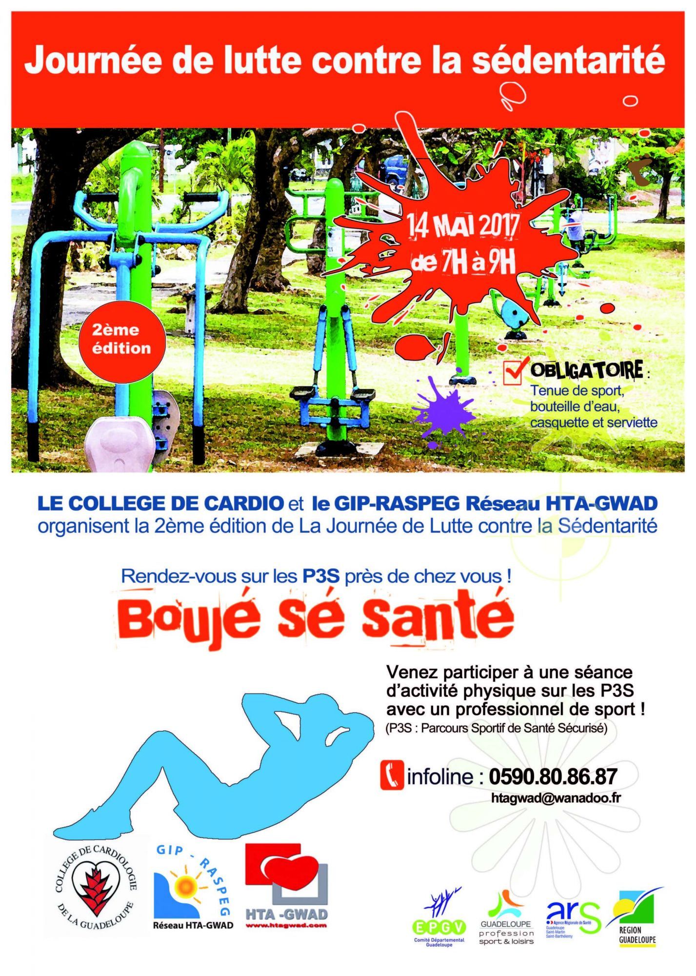 Le Réseau HTA- GWAD GIP- RASPEG met en place la 2ème édition de la Journée de Lutte contre la Sédentarité autour des Parcours de Santé Sécurisés (P3S) le 14 Mai 2017.