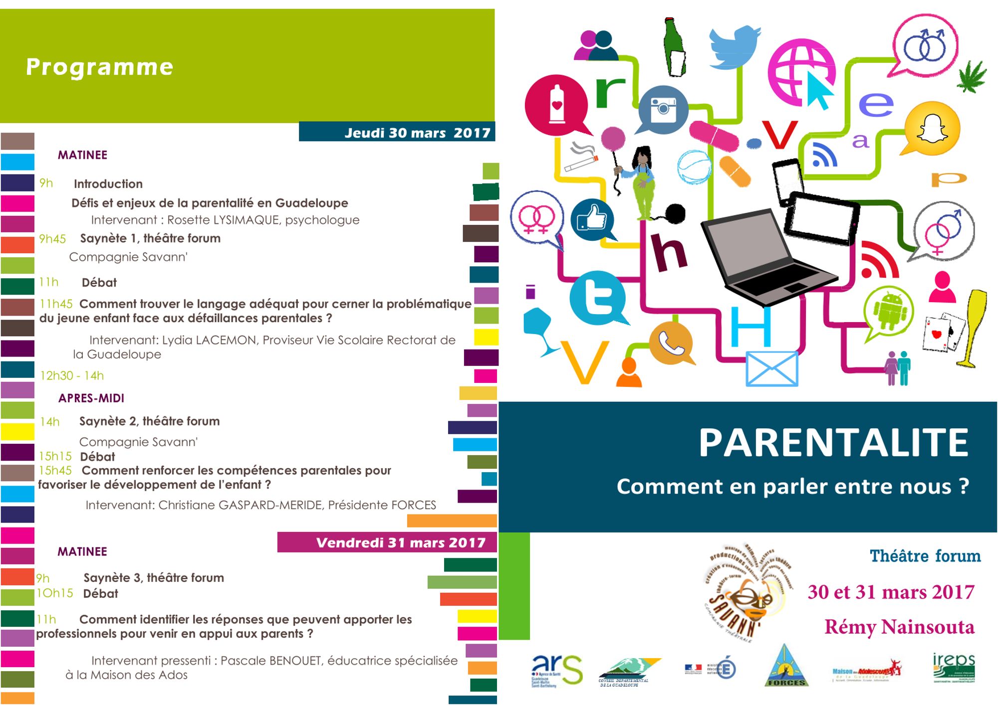 Parentalité, comment en parler entre nous? 30 et 31 mars 2017, centre Rémy NAINSOUTA Dernière modification : 2 juin 2021 Formulaire d'inscription Programme Parentalité, comment en parler entre nous? (850.8 Ko)