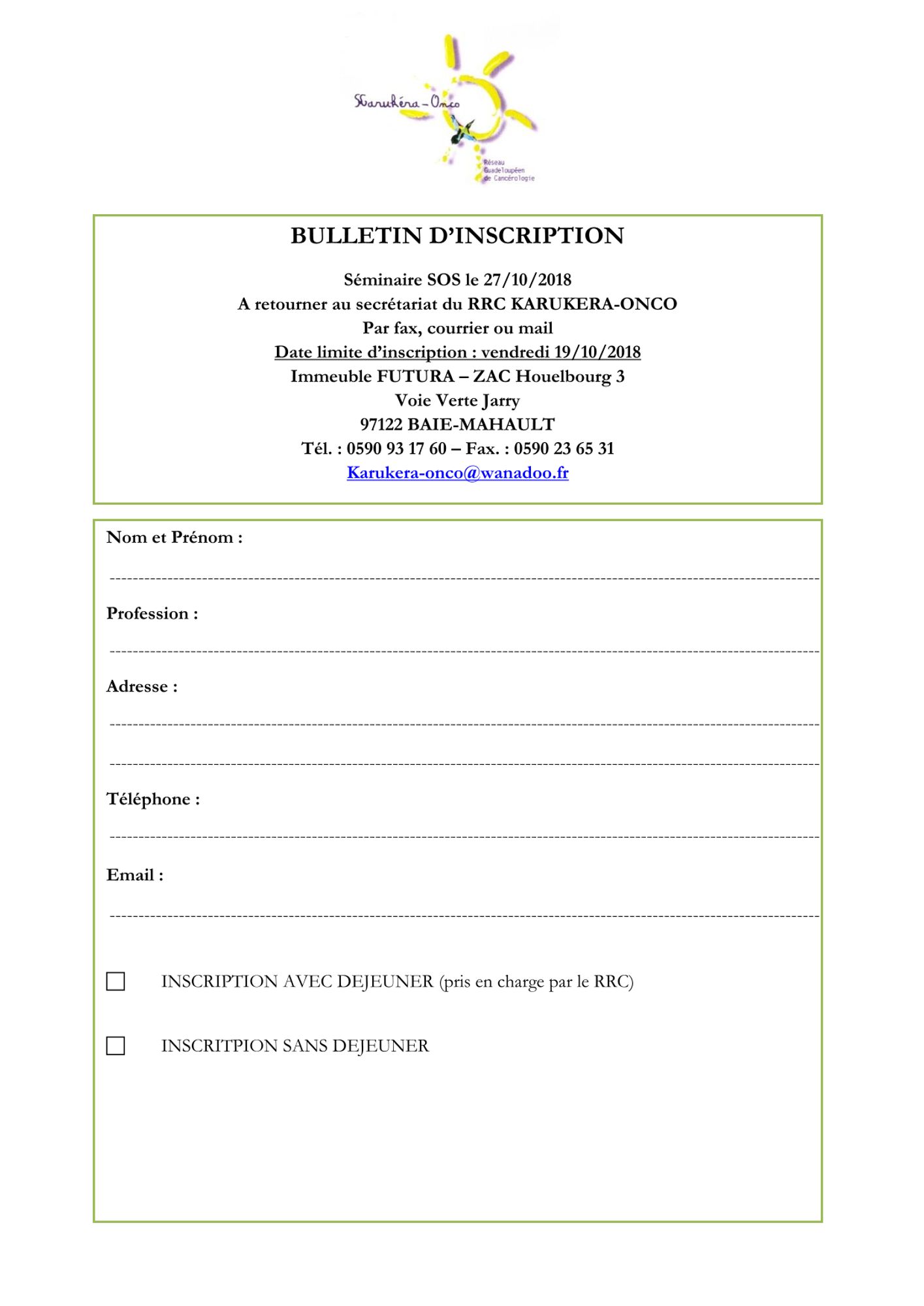 A noter que le bulletin d'inscription doit être impérativement renvoyé à la date du 19 octobre 2018 (date limite d'inscription)