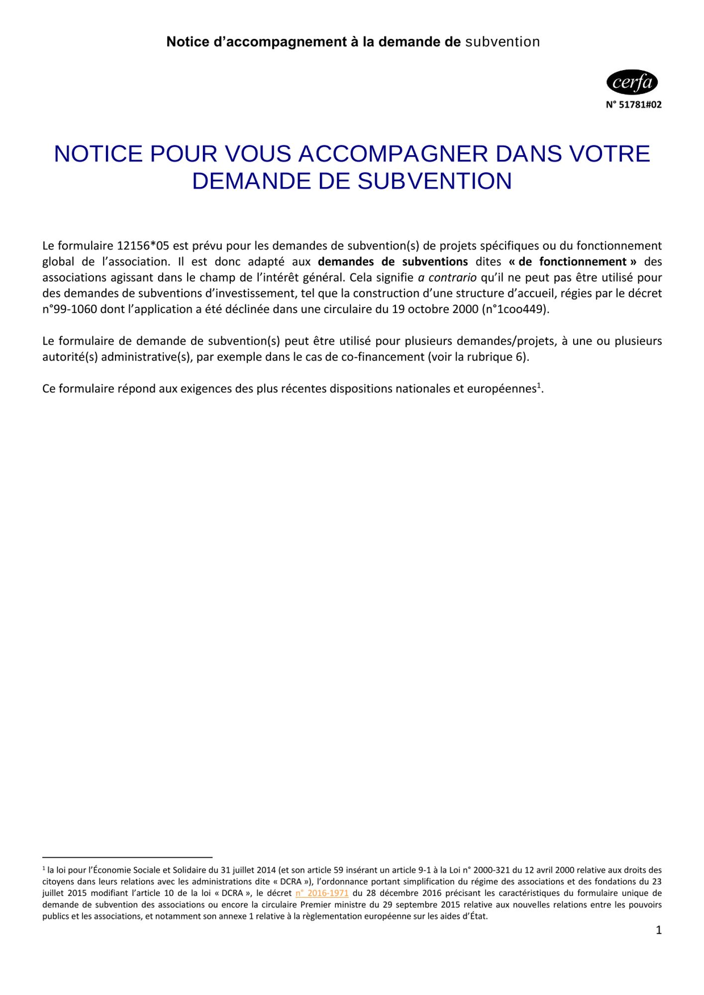 - Formulaire cerfa n°12056*03 pour la demande de subvention d'une association