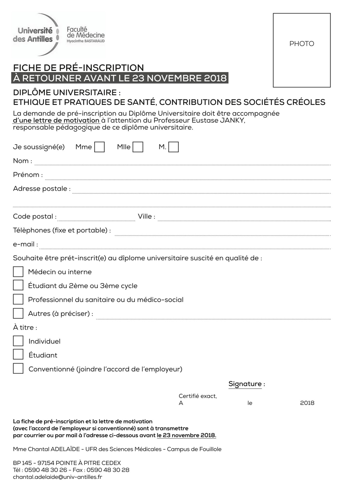 Diplôme universitaire "Ethique et pratiques de santé". Contribution des sociétés créoles - Janvier 2019