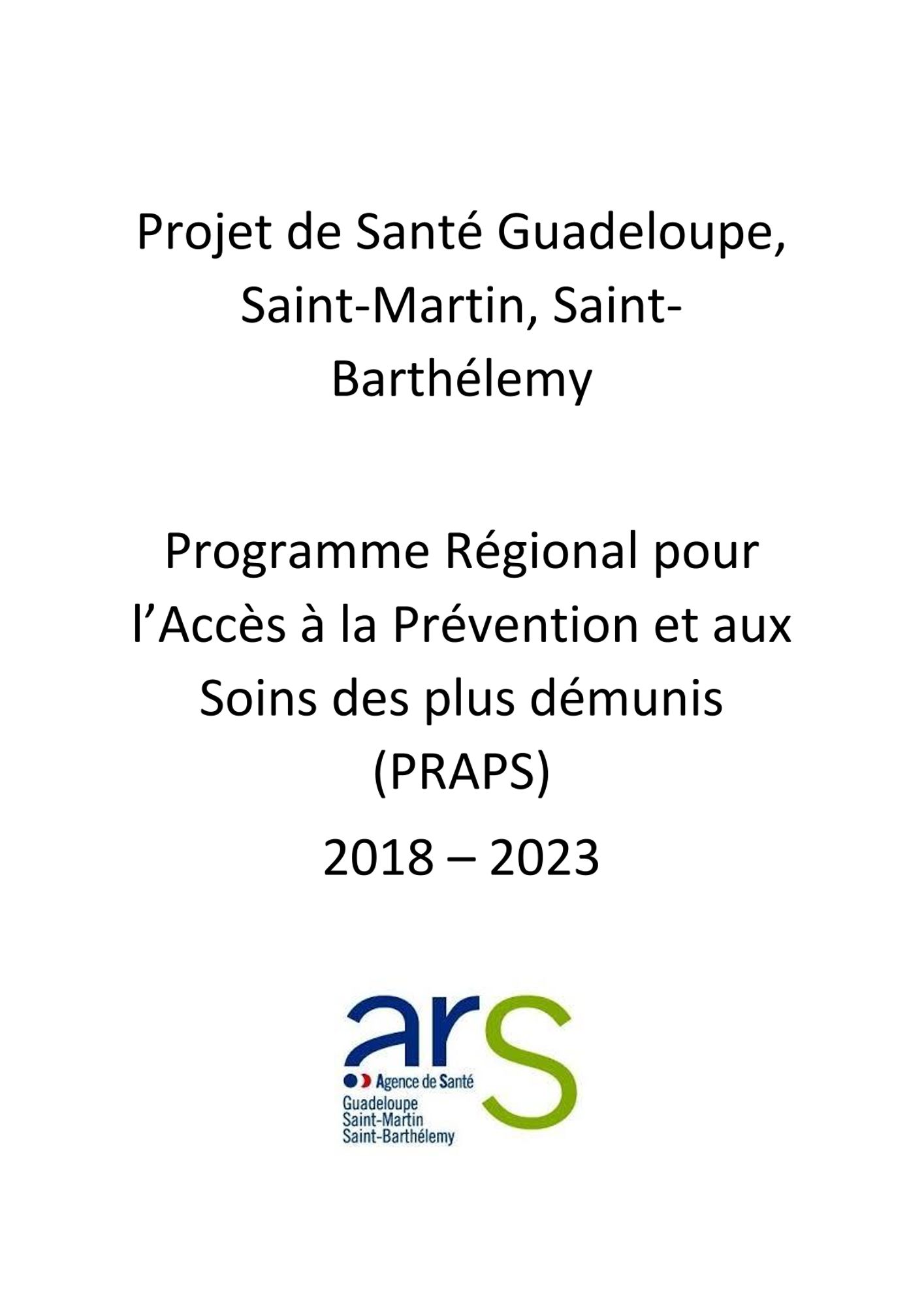 L’Agence de Santé de Guadeloupe, Saint-Martin et Saint-Barthélemy a adopté le 5 juillet 2018 le Projet Régional de Santé (PRS2) de Guadeloupe, Saint-Martin et Saint-Barthélemy.