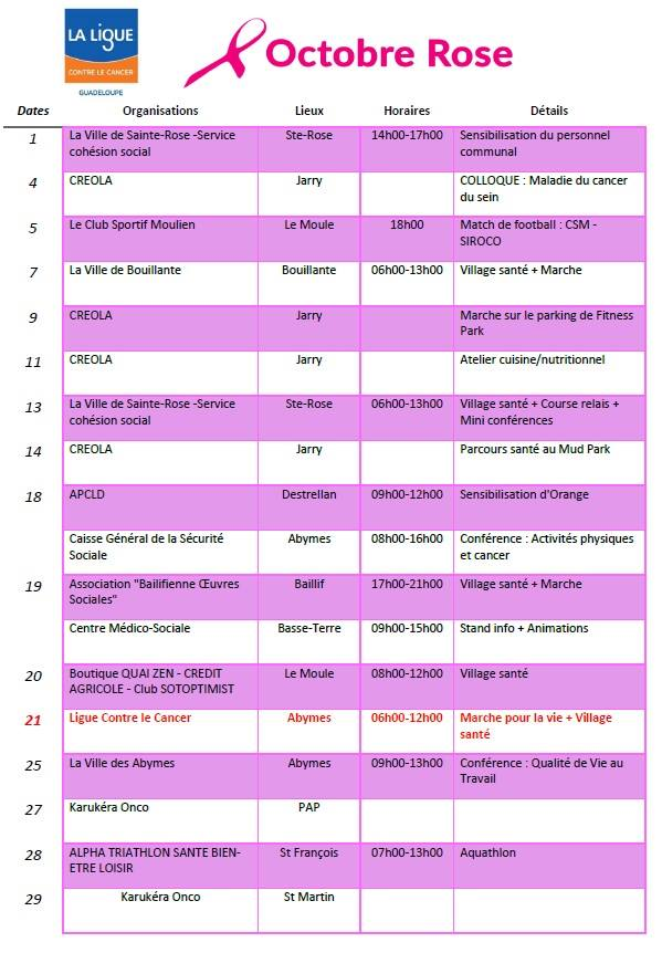 Programme "Octobre Rose" - Comité Guadeloupe de La Ligue contre le cancer