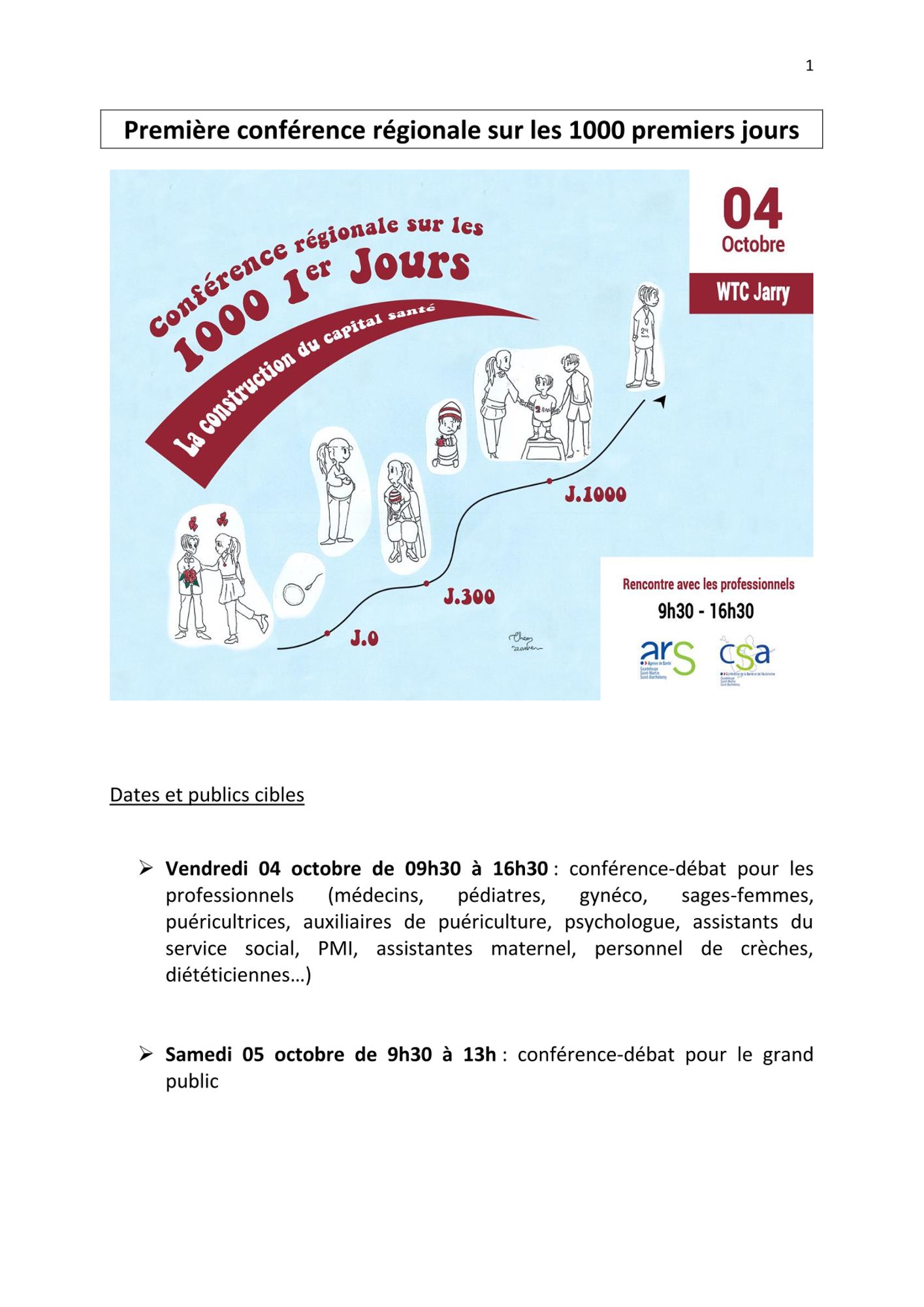 L’agence Régionale de santé organise la première conférence régionale sur le sujet. La manifestation se déroulera au CWTC en présence du Professeur Laurent STORME, pédiatre référent national sur les 1000 premiers jours.