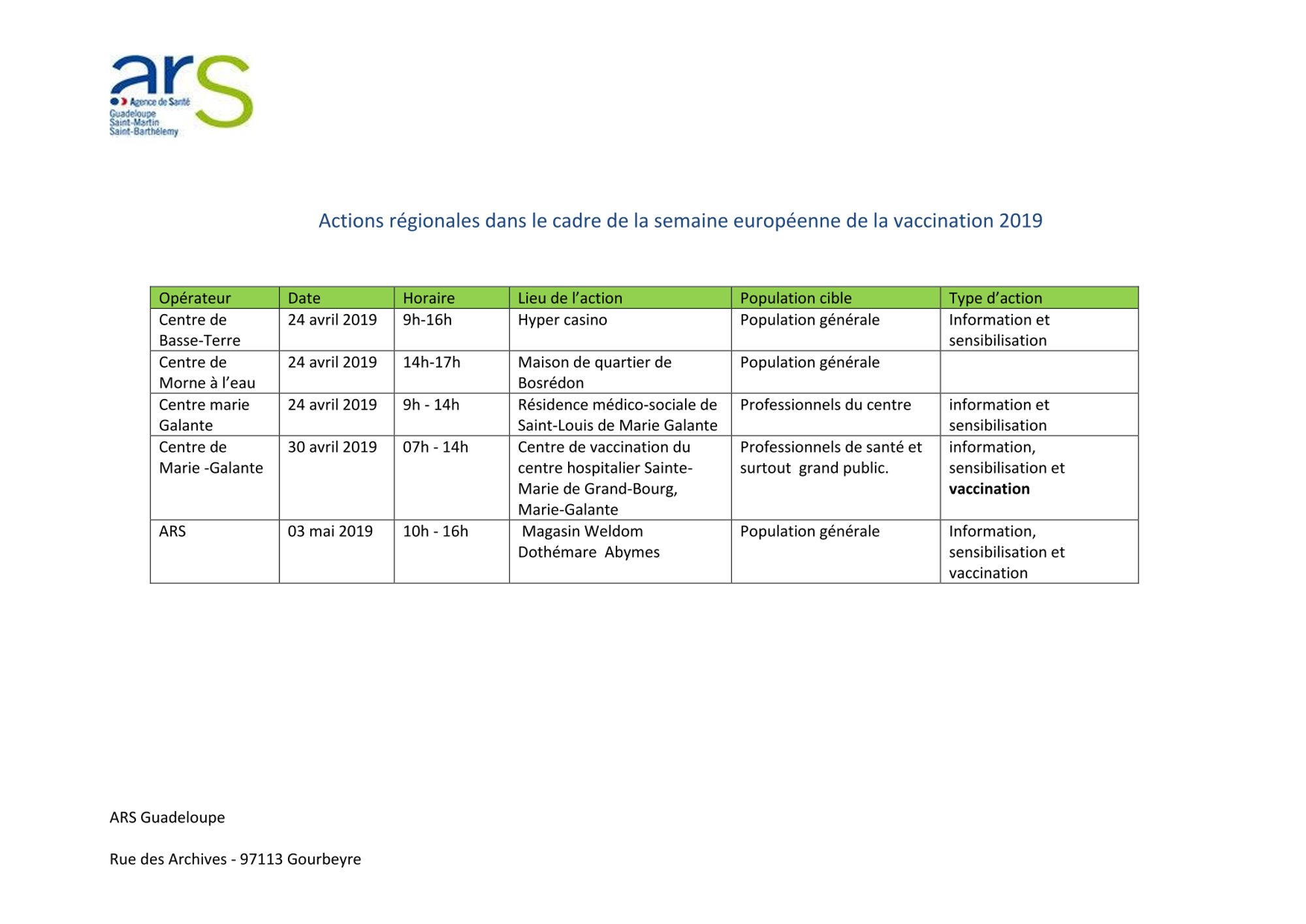 Suzy Denin Infirmière chargée de programmes Agence de Santé (ARS) Guadeloupe Saint-Martin, Saint-Barthélemy - Courriel: suzy.denin@ars.sante.fr