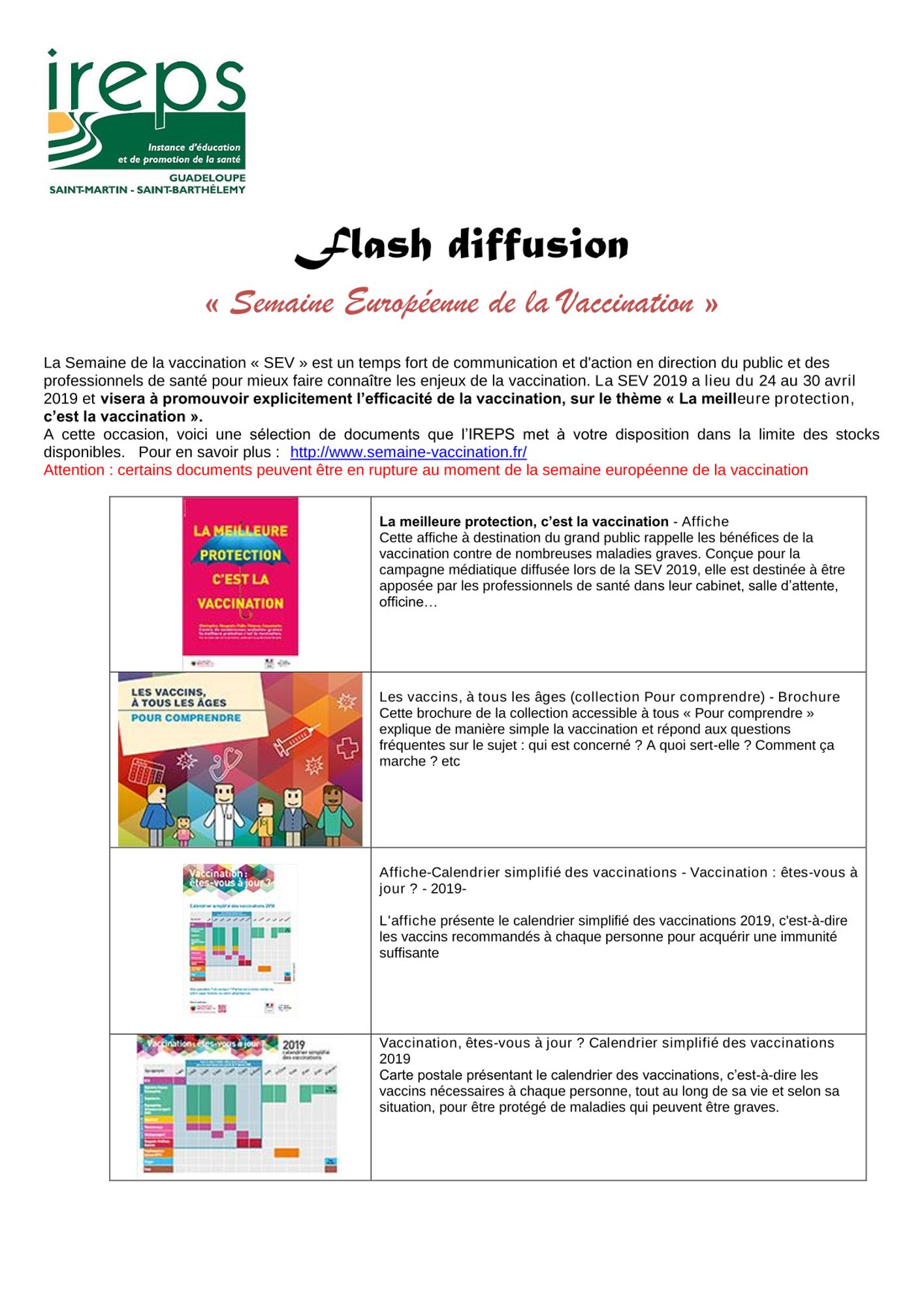 La 13ème édition de la Semaine européenne de la vaccination (#SEV) se déroulera en France et en Guadeloupe du 24 au 30 avril prochain.