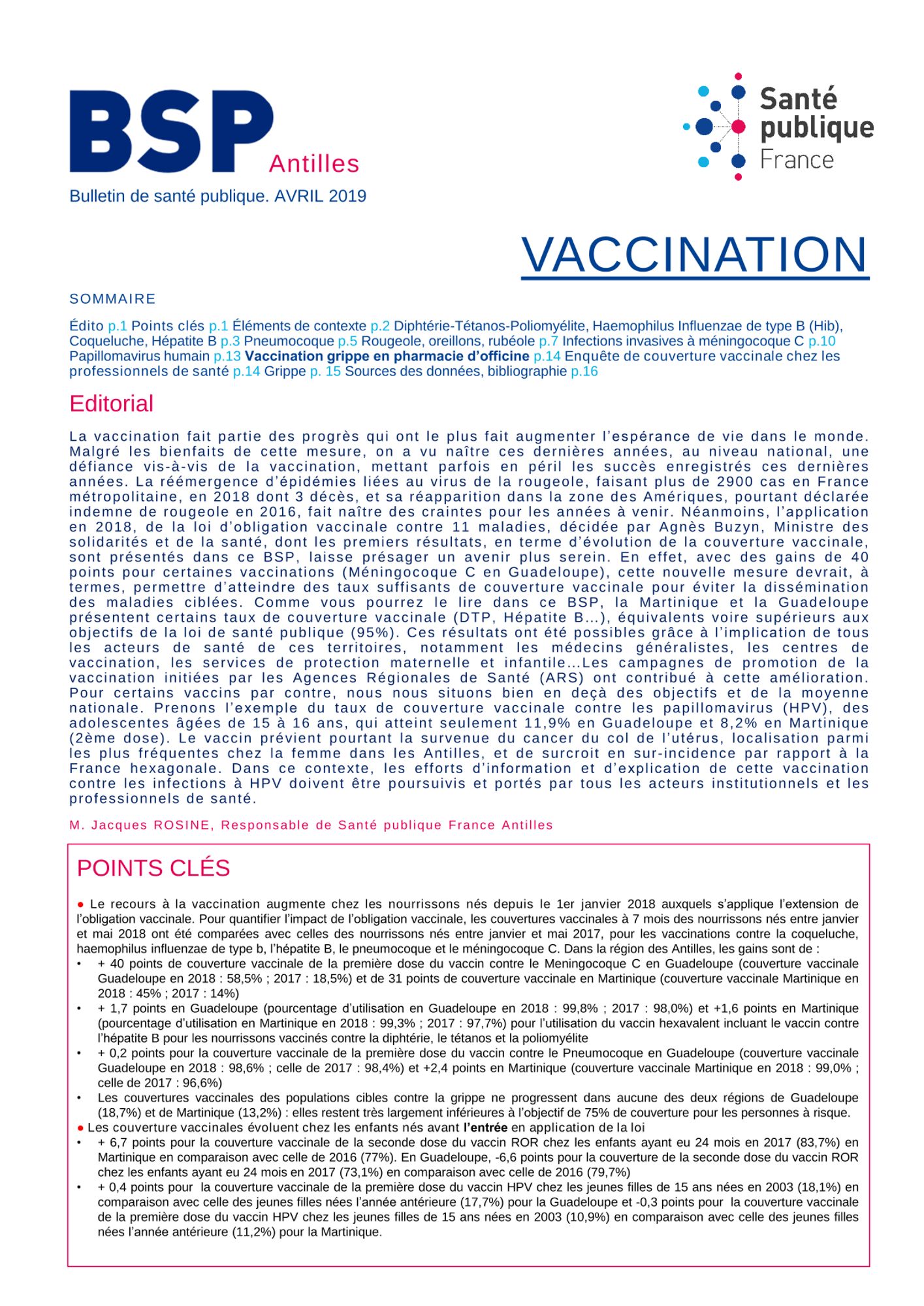 18/04/2019 - Bulletin de Santé Publique France (BSP) Antilles - Spécial Vaccination