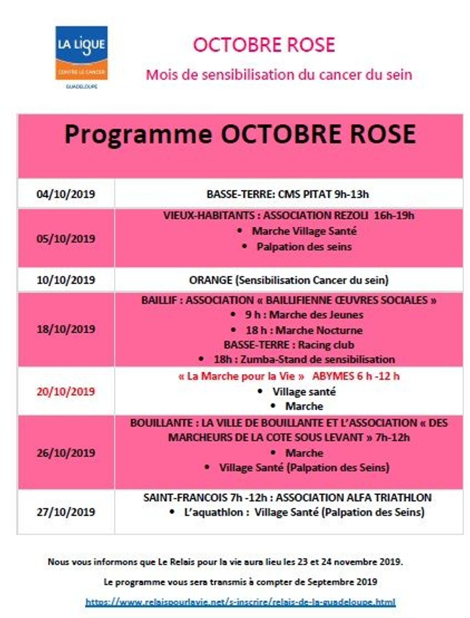 Programme "Octobre Rose" 2019 - Comité Guadeloupe de La Ligue contre le Cancer