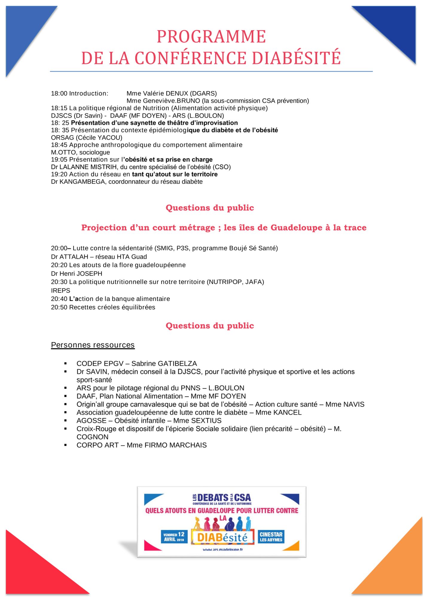 Vendredi 12 avril 2019 - Conférence "Diabésité" - CSA / ARS Gpe, Saint-Martin, Saint-Barthélemy/ Conférence de La Santé et de l'Autonomie