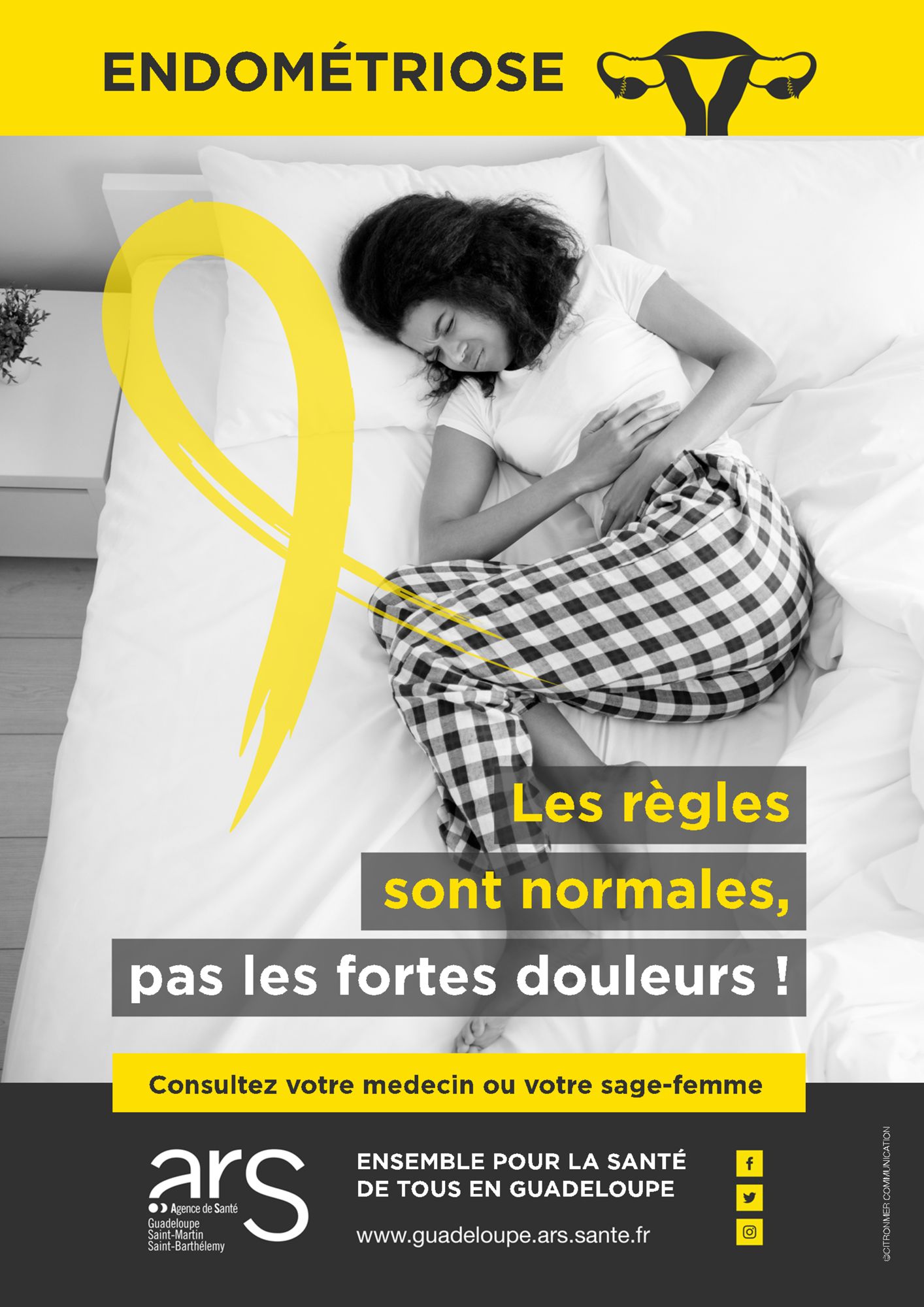 L'agence régionale de santé lance une grande campagne de sensibilisation sur l'endométriose, maladie chronique inflammatoire encore trop méconnue bien qu'elle touche de nombreuses femmes. Un message-clé est largement diffusé : " les règles sont normales, pas les fortes douleurs ! ", afin d'inciter à la consultation d'un médecin ou d'une sage-femme au moindre doute.