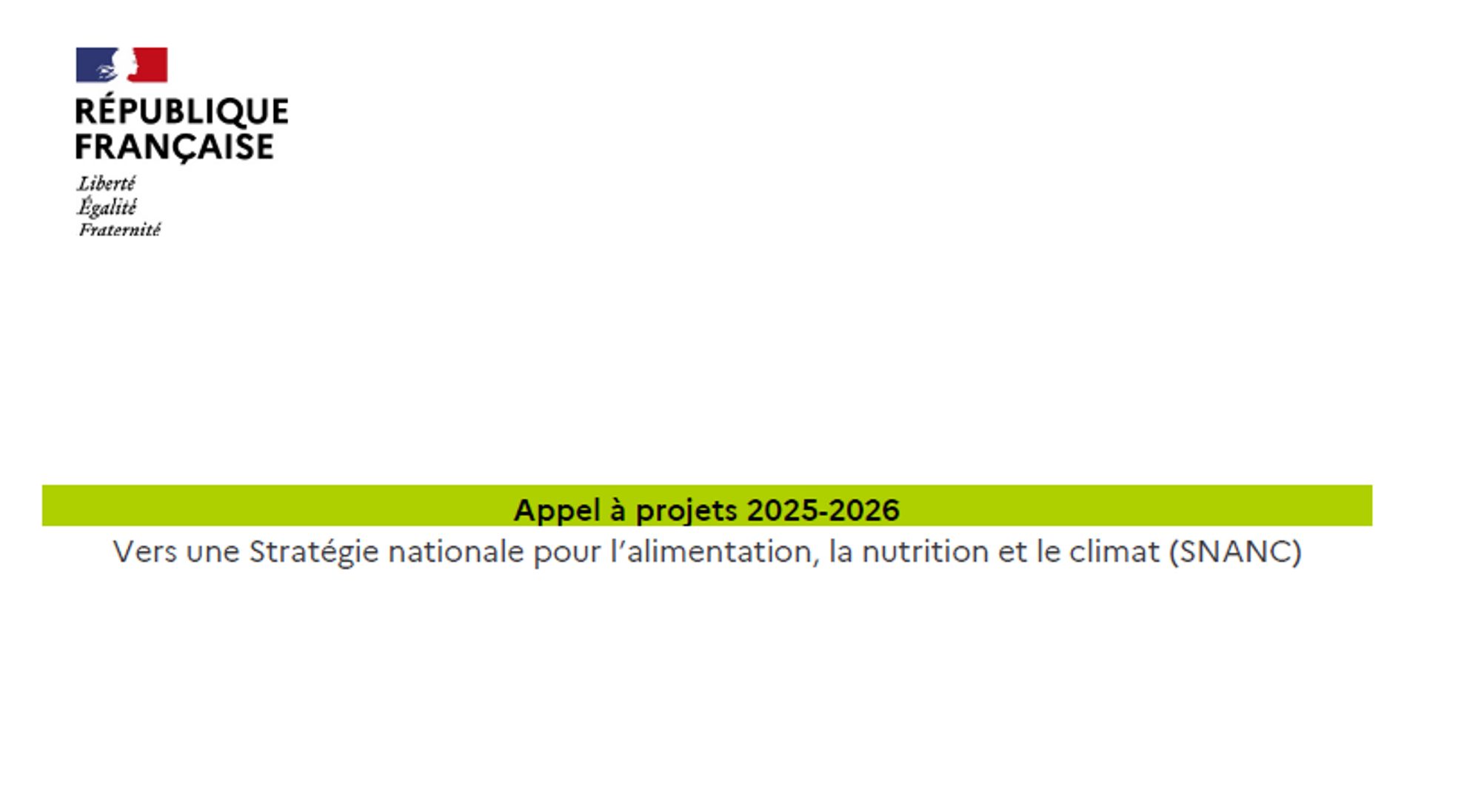 Appel à projets 2025-2026 du Programme national pour l'alimentation, la nutrition et le climat (SNANC)