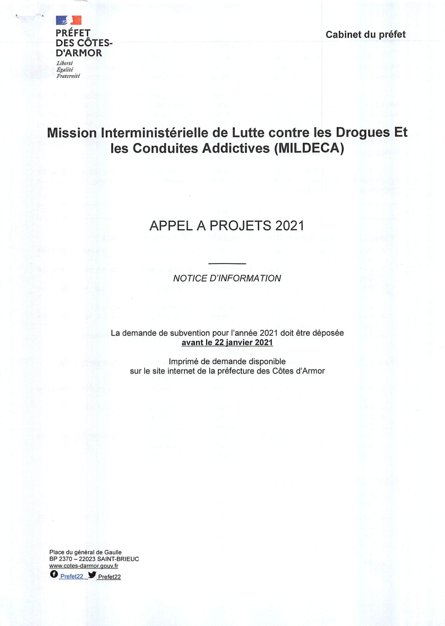 Pour la 3ème fois, la MILDECA lance un appel à projets au niveau national destiné aux communes et intercommunalités. L’édition 2021 aura pour thème la « Prévention des conduites addictives à l'échelle d'un territoire ». Cet appel à projets national vise à favoriser la construction d’un projet politique local, décliné en actions concrètes, afin de changer la donne à l’échelle d’un territoire, en matière de comportements à risque liés aux substances psychoactives ou de conduites addictives sans produit (usage problématique des écrans ou de jeux d’argent et de hasard par exemple).