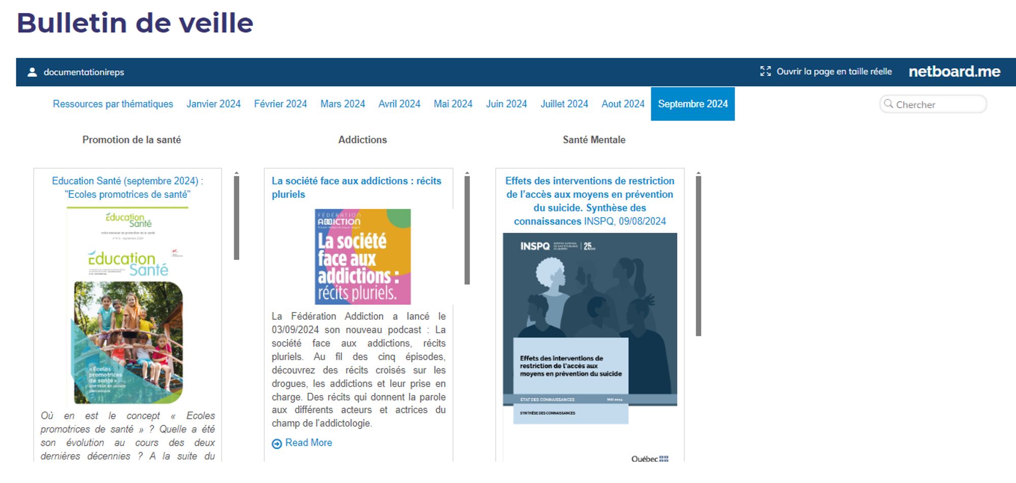 Bulletin veille documentaire - Mise à jour Septembre 2024