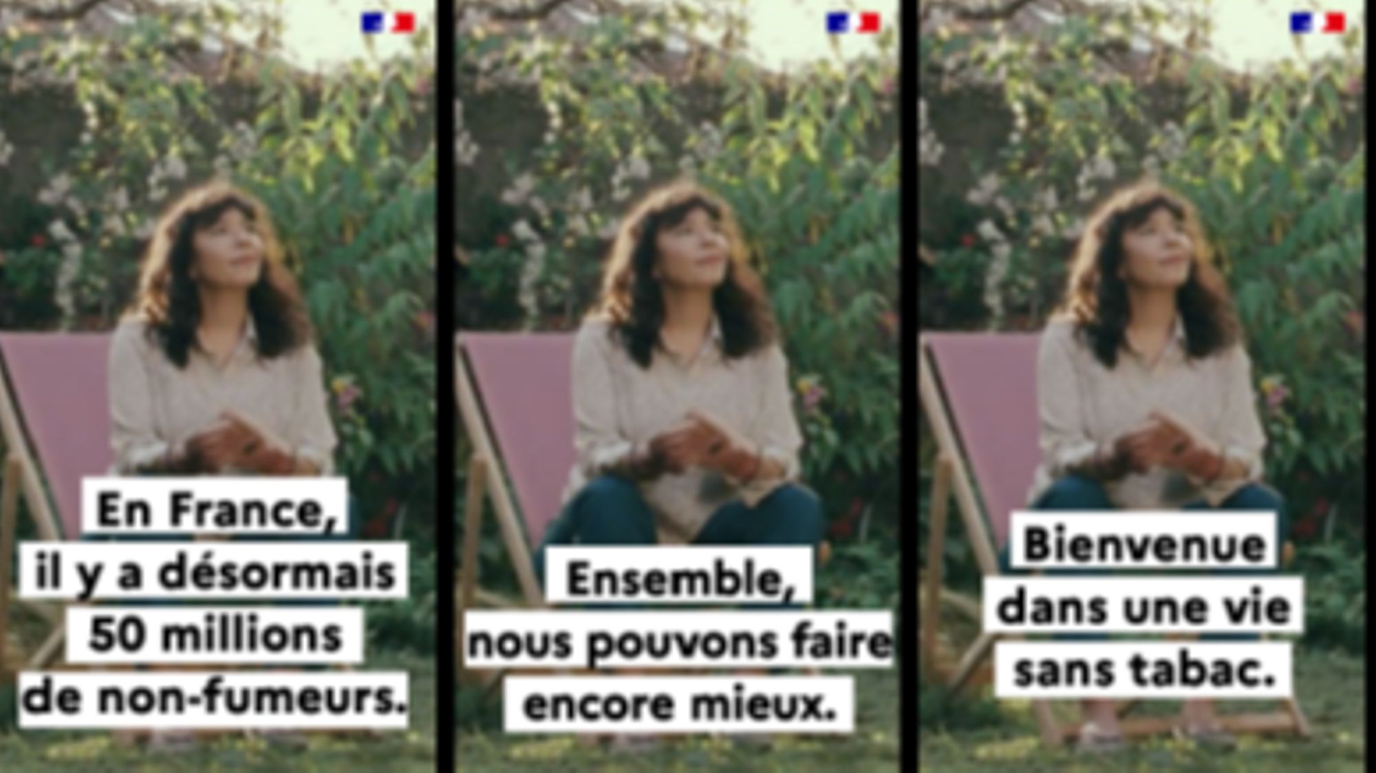 Dans un spot télévisuel de 30 secondes, la vie sans tabac est présentée comme une norme désirable. Il s’adresse au plus grand nombre et célèbre les victoires de chacun sur le tabagisme et souhaite la Bienvenue dans une vie sans tabac. Ce spot est décliné en 3 vidéos de 10 secondes et diffusé à la télévision et en VOL (vidéo sur ordinateur, mobile ou tablette). Le dispositif sera complété par une campagne d’affichage print et dynamique (DOOH ou affichage publicitaire extérieur digitalisé) sur tout le territoire.
