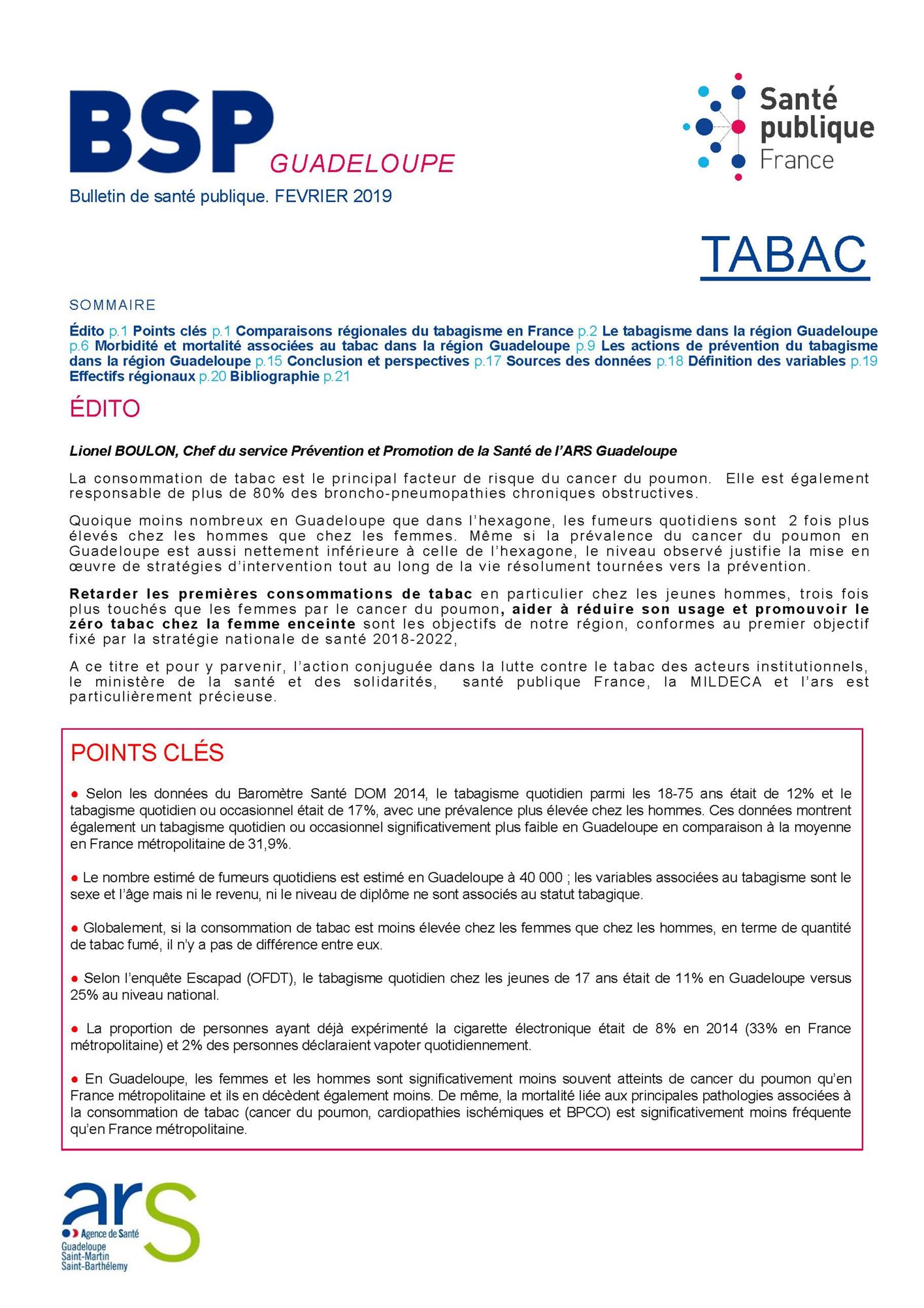 Sources: Tabac. Bulletin de santé publique Guadeloupe, février 2019, 22p. En téléchargement (au format pdf: 1, 26 Mo) sur le site Santé publique France (19/02/2019)