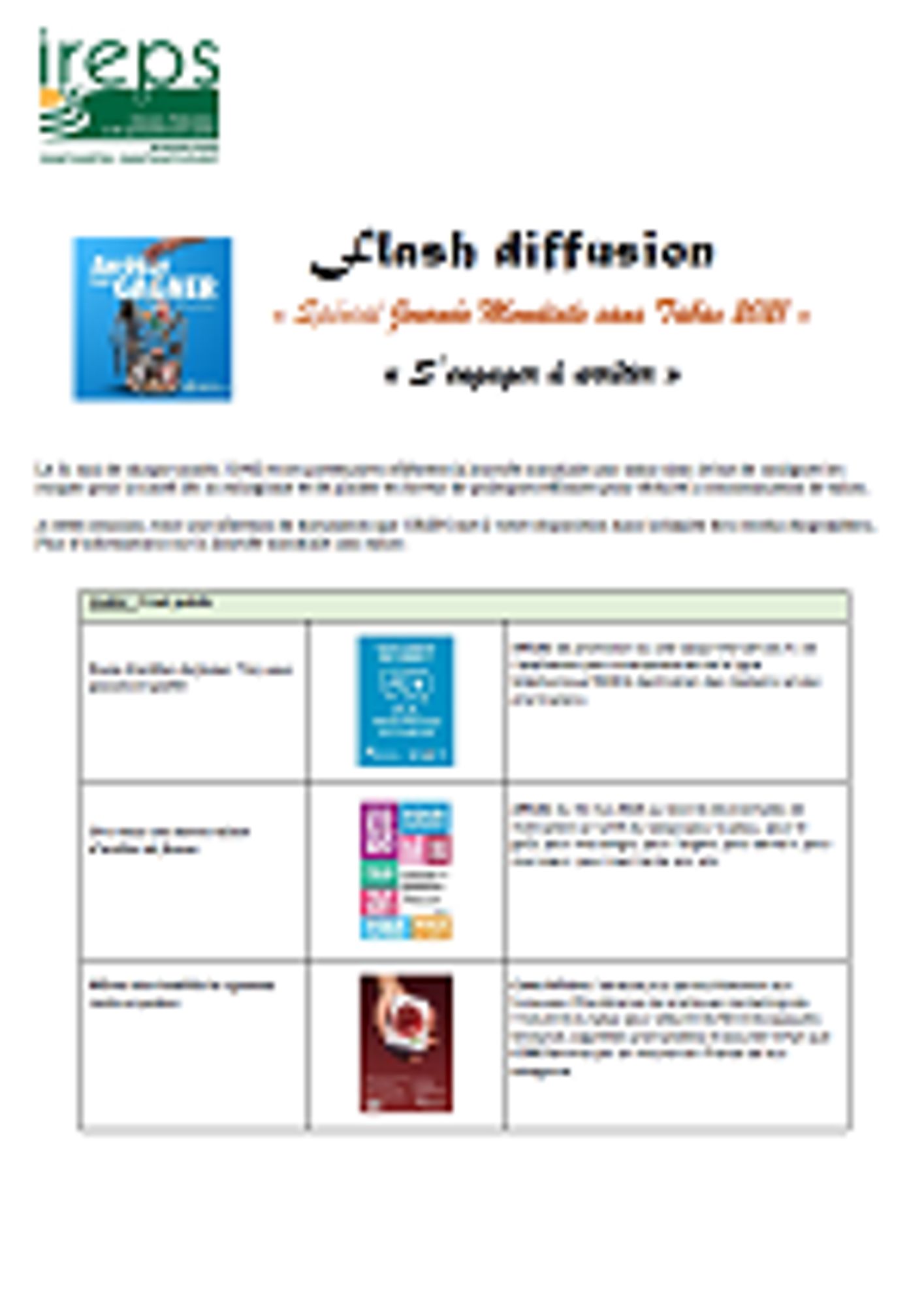 Disponible en téléchargement (format pdf: 161 ko) et en format papier sur demande à l'IREPS.
