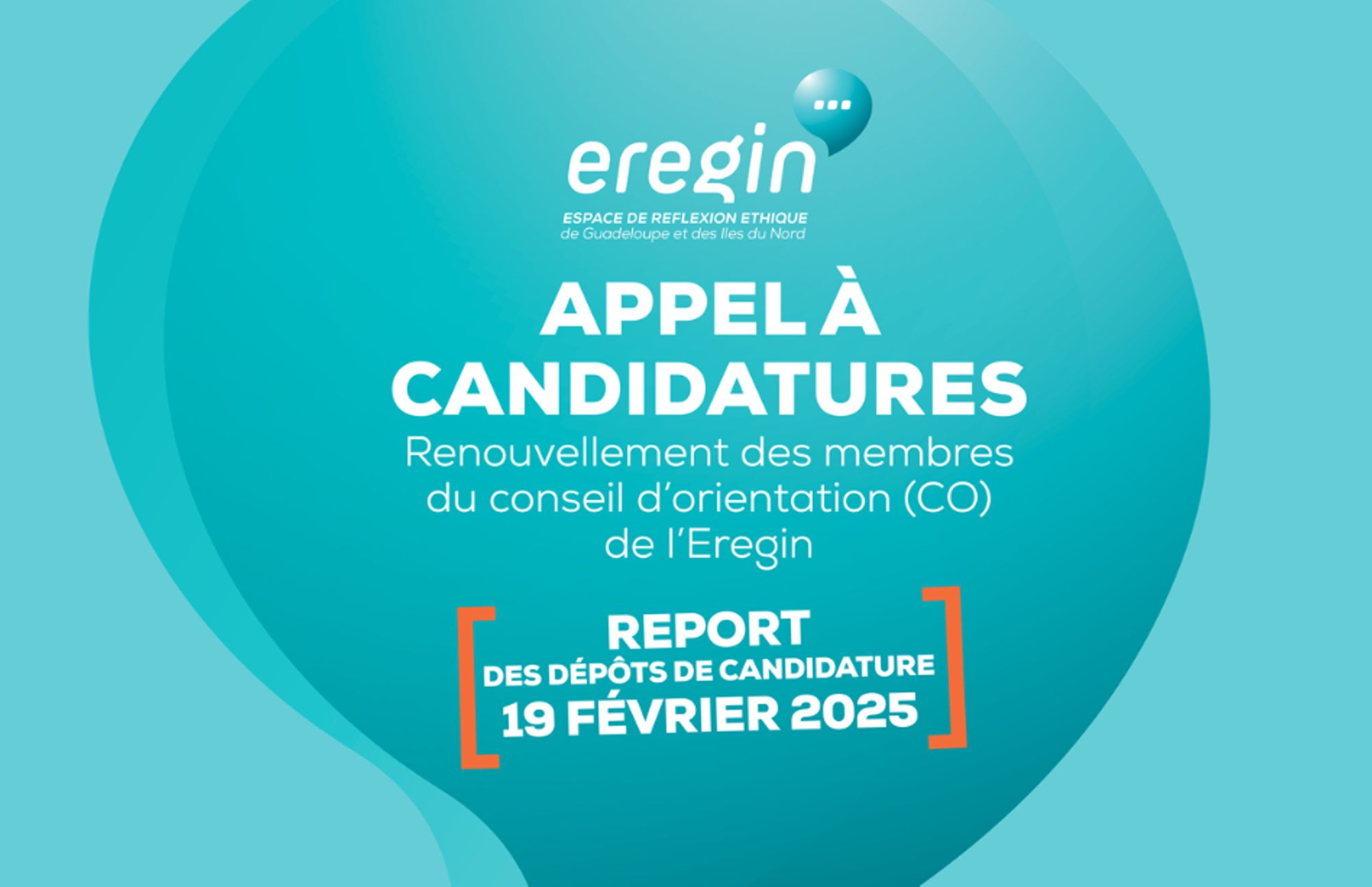 L'espace de réflexion éthique de Guadeloupe et des Îles du Nord (EREGIN) lance un appel à candidatures pour renouveler les membres de son conseil d'orientation (CO). Date limite : 19/02/2025