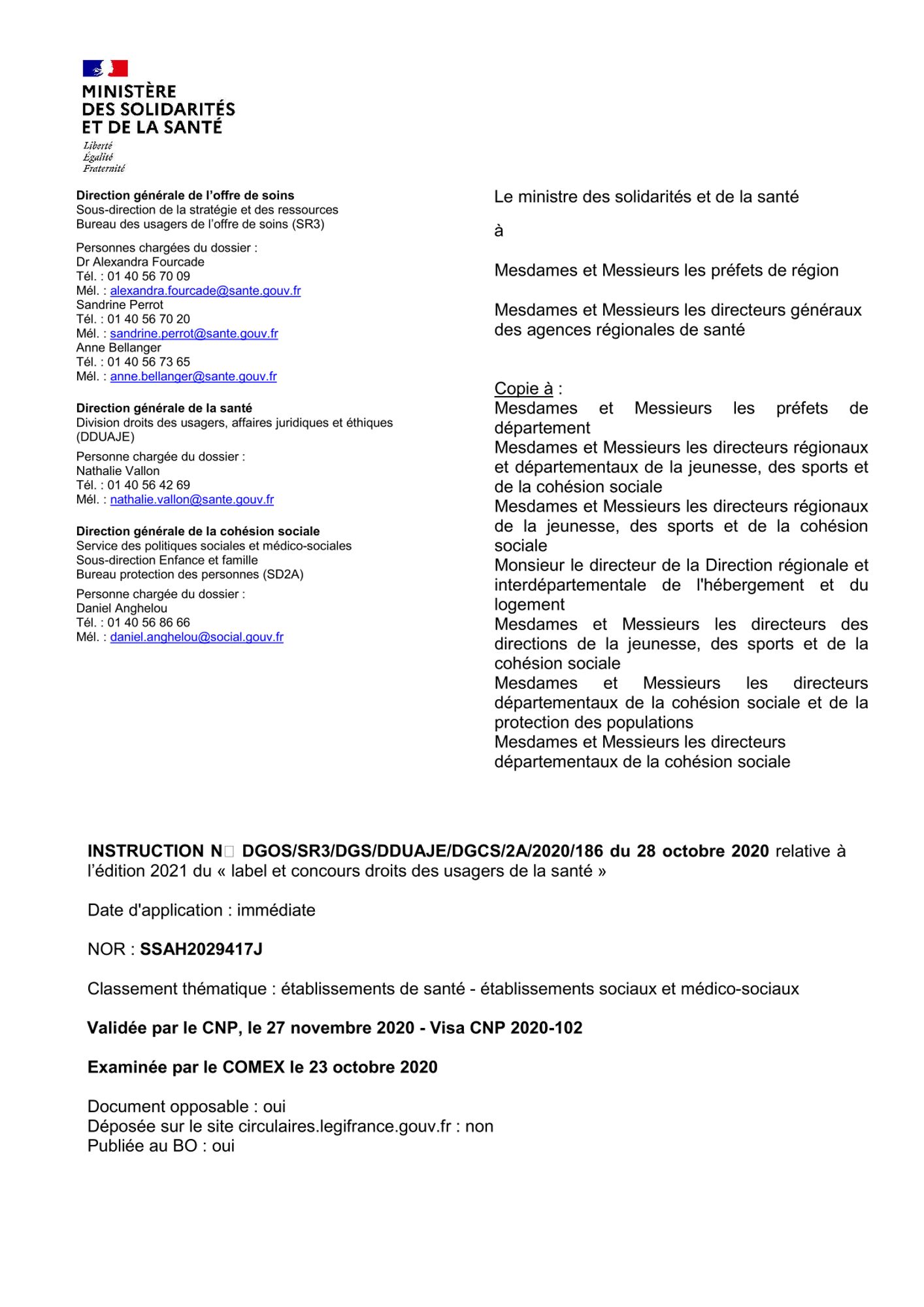 L’attribution du label « Droits des usagers de la santé » est confiée aux agences régionales de santé (ARS), après avis des commissions spécialisées droits des usagers (CSDU) des conférences régionales de santé et de l’autonomie (CRSA) et, en lien le cas échéant, avec les directions régionales de la jeunesse, des sports et de la cohésion sociale (DRJSCS).