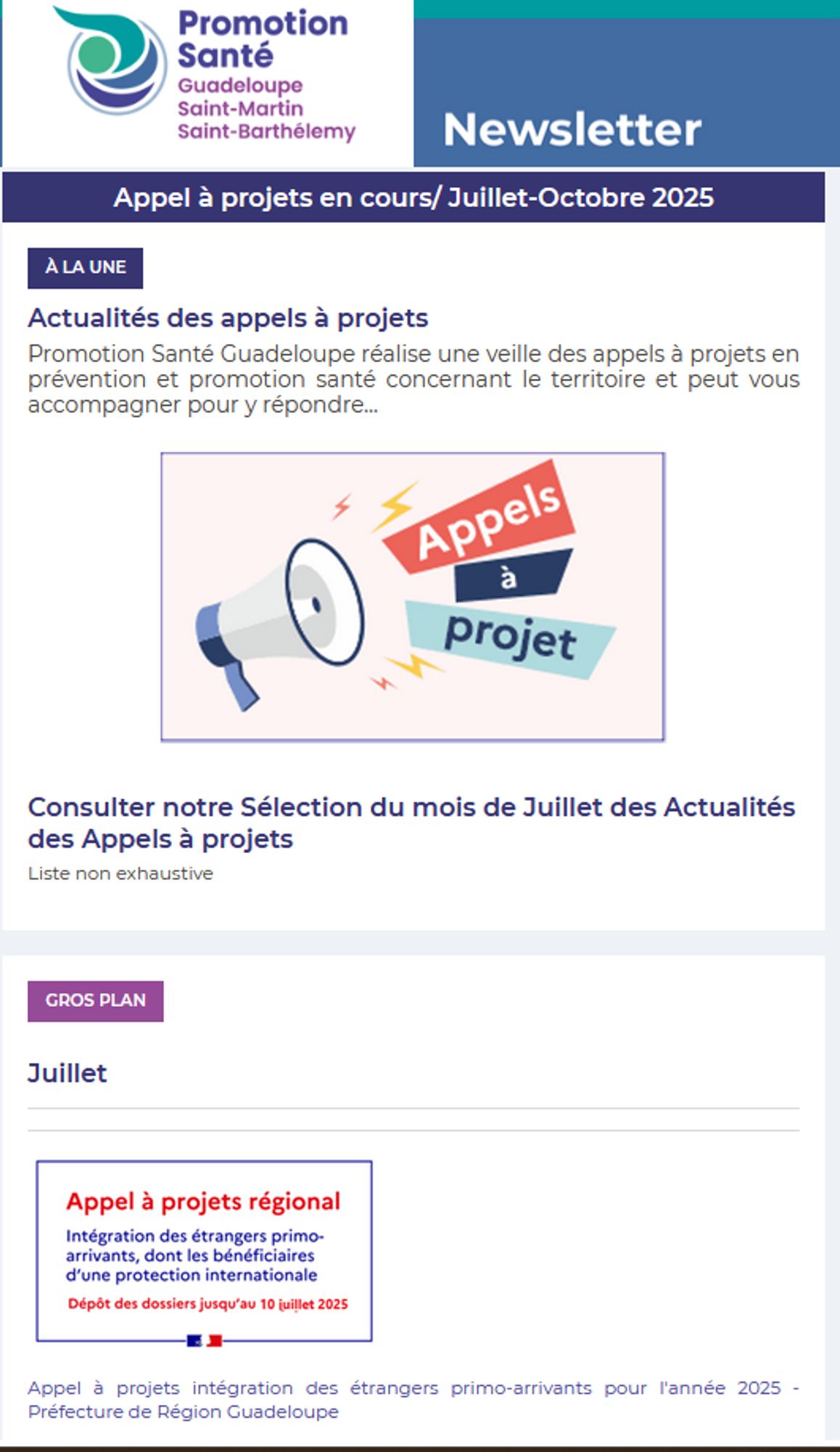 Fondée sur une approche globale de la santé, Promotion Santé Guadeloupe, Saint-Martin, Saint-Barthélemy travaille en étroite relation avec les associations de prévention du territoire de la Guadeloupe et des îles du Nord.