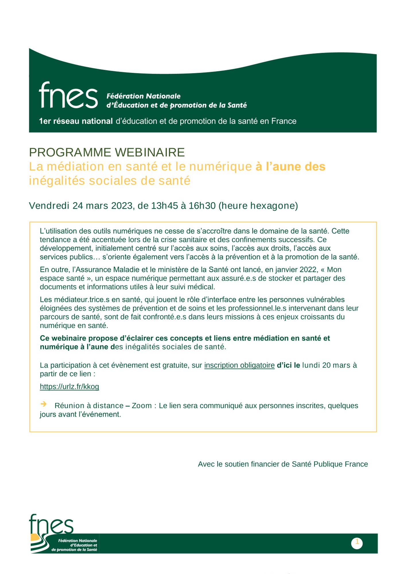 Dans le cadre de la convention avec Santé publique France, la FNES met en place un webinaire sur
