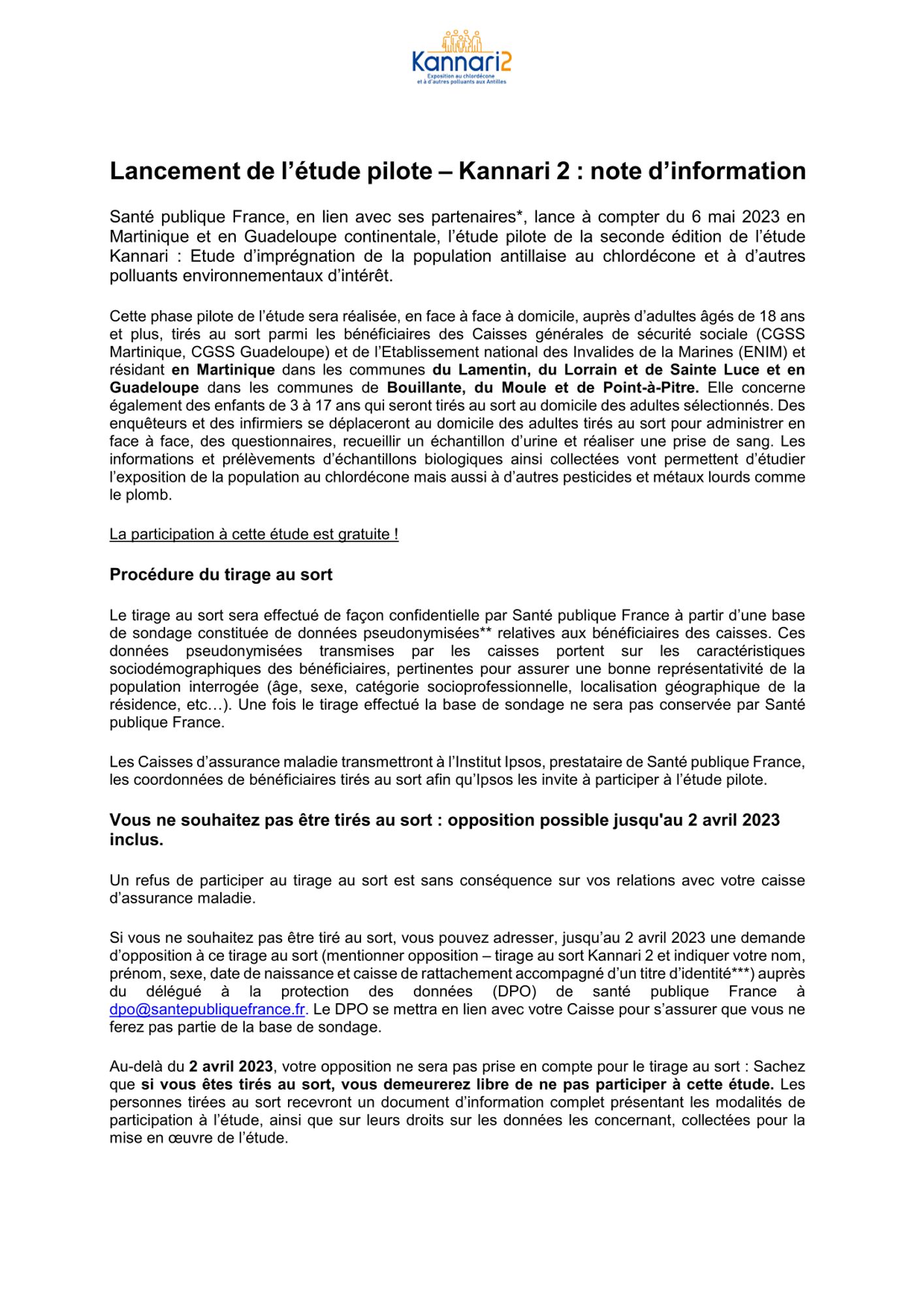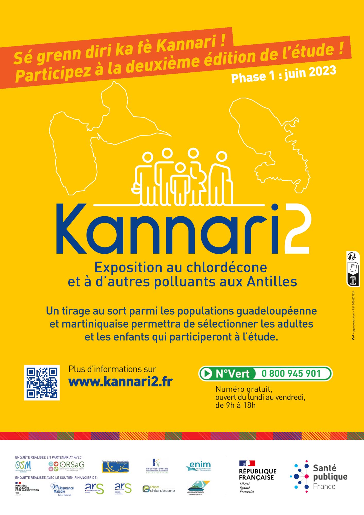 - 2ème phase entre janvier et avril 2024 avec le lancement à grande échelle de l’étude Kannari 2 sur l’ensemble des deux territoires de la Guadeloupe et de la Martinique.