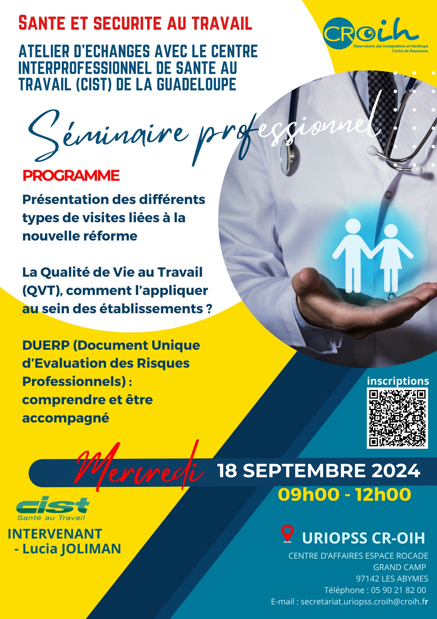 Séminaire professionnel - Santé et Sécurité au Travail - Atelier d'échanges avec le Centre Interprofessionnel de Santé au Travail (CIST) de Guadeloupe