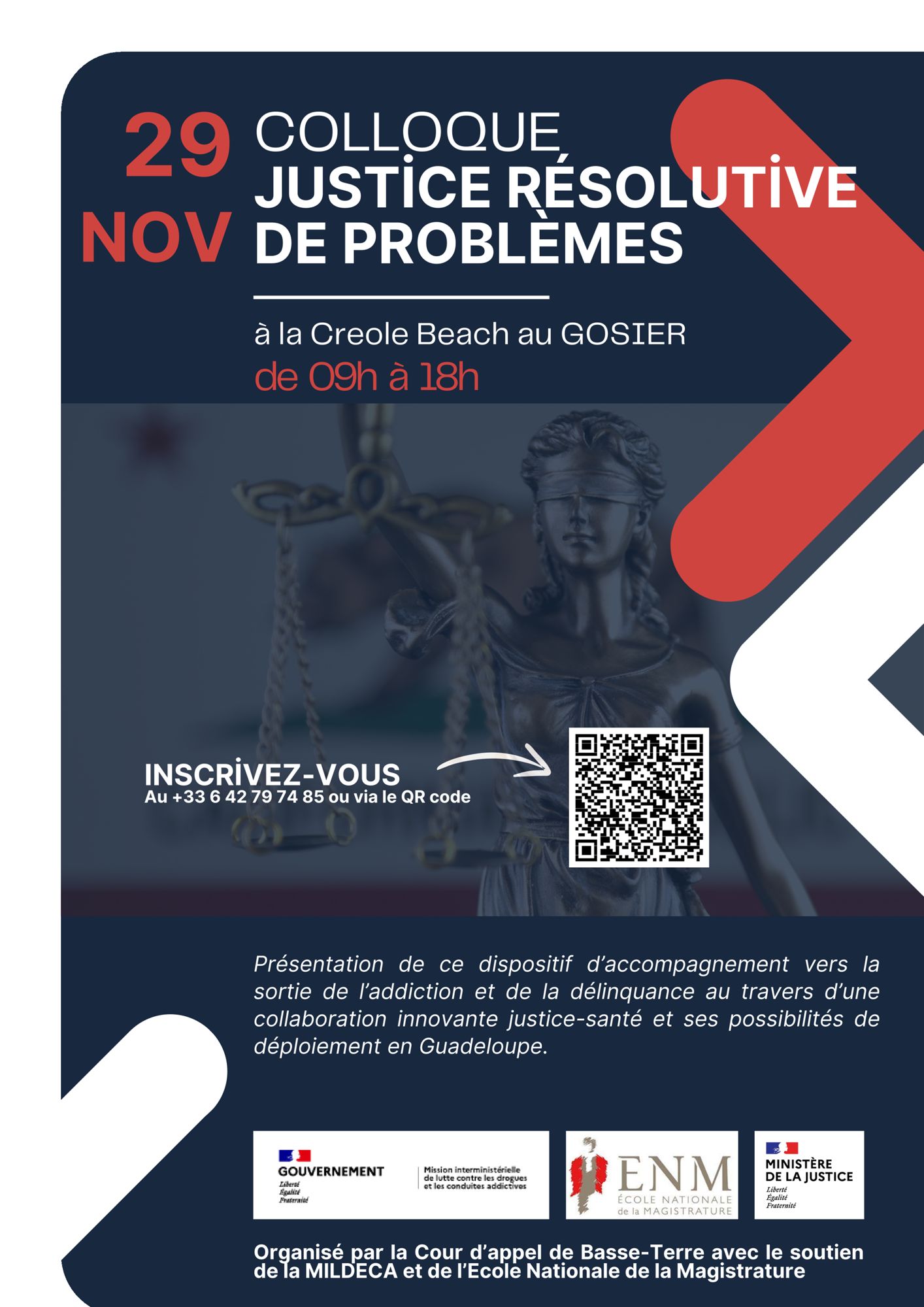 Colloque - Justice résolutive de problèmes en matière d'addictions - MILDECA/ Ministère de la Justice: Cours d'appel de Basse-Terre/ Ecole nationale de la Magistrature